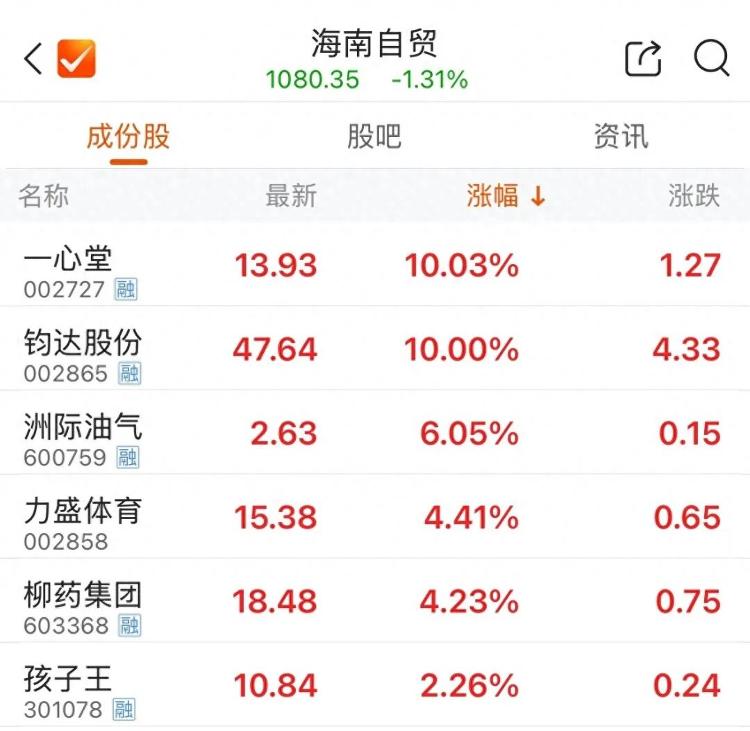 12月18日,海南自由贸易港正式全岛封岛运营,实行“一线放开、二线管控、岛屿自由”的政策。封关后,企业进口各类原材料将享受“零关税”政策,企业所得税和职工个人所得税税额将减少。受此利好消息影响,近日多只“海南自贸”概念股纷纷涨停。 Choice金融终端数据显示,截至12月18日收盘,“海南自贸”板块78只概念股中,一心堂(002727.SZ)领涨10.03%,洲际油气、力盛体育、六耀集团涨幅均超过4%。此前,12月17日,36只海南自贸概念股股价上涨。 (来源:Choice数据)九派财经记者询问多家上市公司作为投资者,不少m表示,“关闭海关”降低了他们购买进口原材料和设备的成本。据了解,封关后,海南自由贸易港“零关税”货物范围由此前的1900个税目扩大到约6600个税目。新增免税商品大部分为化学品、矿产品、计算机设备、机械、电子设备等。关关首日,海南炼化完成首批优惠商品通关。预计到2025年原材料成本将降低900万元,关门后采购总成本将进一步大幅降低。海南矿业(601969.SH)也向九派财经记者表示,其原材料之一的进口锂辉石已由之前的50%税率降至免税,成本有所下降。但该业务目前占比较小预计将为明年的收入做出重大贡献。海南海药(000566.SZ)在封关政策发布后,加大了与新西兰、希腊、马来西亚等地国际药企的合作。海南海药告诉九派财经记者,公司此前采购了一小部分进口产品。封关前后,与国外公司合作推出了一些新产品。从长远来看,“海南自由贸易港”建设也给企业资本流通和土地增值带来利好。海南橡胶(601118.SH)表示,封关后,公司可利用内保、对外贷款等方式降低海外子公司的融资成本,以低利率替代此前的高息债务。其董事会秘书告诉九拍财经记者,另一大优点是公司拥有3.27工厂海南省土地面积10万公顷,占海南岛总面积的1/15。在“自贸港”发展背景下,公司于2025年开始开展土地租赁业务,租赁土地超过40万公顷,使得公司亏损大幅减少。与此同时,海南海药等企业表示,实施“封关”后,公司引进高端科研人才的资金成本有所降低。据了解,海南自由贸易港对在岛内注册的鼓励类工业企业实行15%的企业所得税优惠政策,低于全国25%的平均税率。高端人才和紧缺人才实际个人所得税负担不超过15%。对于海关封关对各行业的影响,中国贸促会常务副秘书长林宪平表示:中国城市专家智库委员会总结认为,进出口贸易、国际航运、仓储物流是直接享受通关便利、税收优惠的直接受益行业。二是免签、免税政策和“岛内自由”将吸引更多国际游客,带动旅游、酒店、会展、文化娱乐、医疗、教育等服务业提质扩容。 “零关税”和低税收政策有利于降低研发成本,吸引生物医药、数字经济、新能源等高端制造和科技企业落户。但也有一些企业,实际业务并未因封关政策发生重大变化,但受“海南自贸”概念等诸多因素影响,其价格在二级市场上已涨至涨停。 12月17日起至18日,君达股份(002865.SZ)连续2日涨停。该公司向J记者回应称,海南封关后,公司业务和利润短期内不会发生较大变化。 “由于光伏电池行业原材料几乎全部来自国内,且公司生产基地不在海南,公司及境外子公司此前作为高新技术企业享受15%的所得税优惠,封关后成本不会有明显变化。公司目前正在考虑哪些后续业务发展能够与海南下一步的经营政策保持一致。” 18日晚间,君达股份发布《关于股票交易异常波动的公告》称,“近期公司经营状况及内外部经营环境未发生重大变化,存在以下情况:公司没有任何应该披露但不披露的关键信息。建议投资者关注生产经营情况。”来源:九派财经