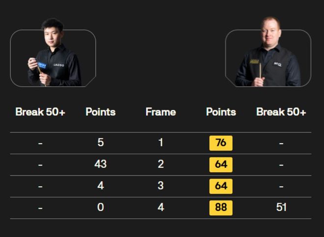 10月19日,赵心童再次遭遇尴尬落败。北爱尔兰斯诺克公开赛首轮,赵心童0-4不敌38岁的乔丹·布朗。往返艰难的赵心童最终独自进入64强。赵心童目前世界排名第11位,乔丹·布朗排名第55位。然而,赵镇童却未能展现出与自己在比赛中的排名相称的实力。首场比赛,曹金童只得到5分,而布朗则得到76分。第二局,曹镇通进步,拿下43分,但布朗拿下64分。第三局,赵心童慢热仅得4分,布朗则拿下64分。第四局,布朗一下子拿下51分,而卓心童则一分未得,以0-88落败。最终,赵心童0-4落败。整场比赛,他单杆得分从未低于50分。除了他在第二场比赛中得到的43分之外,他得分余下三场比赛分别积5分、4分、0分。本赛季,赵心童的表现非常糟糕。他目前参加了七场比赛,但没有获胜,最近四场比赛也没有进入16强。上赛季夺得世界冠军后,赵心童担心场外因素太多。近日,“台球皇帝”亨德利坦言对赵心童的表现感到失望,并表示赵心童被太多的商业活动所拖累。他希望赵心童能够及时适应。曹真童本赛季的临时排名在世界前20名之外。接下来,赵心童将返回中国备战11月初在南京举行的国际锦标赛。