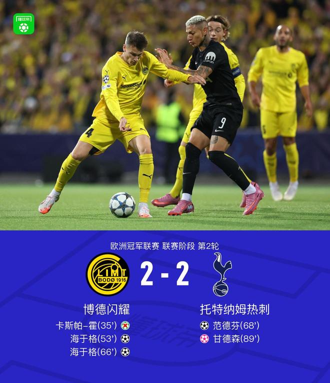 在北京时代,董事会在10月1日的欧洲冠军联赛第二轮对阵托特纳姆热刺的比赛中发光。上半场,卡斯帕尔·霍(Caspar Ho)受到了罚款并开了罚款。在下半场,赫杰格(Hejjger)双重打击,范·德彭(Van Derpen)赢得了头球冠军,在比赛结束时,吉德森(Guinderson)攻入了自己的进球。最终得分将使2-2托特纳姆热刺发光。在关键赛事的第35分钟,Buyorkan创造了一个观点,Caspar Ho在第53分钟踢了监狱,EF继续支持,Heyuger很容易得分,Bode得分为1-0,托特汉姆·霍斯斯特(Totterham Hotspur)以另一个进球,66分钟。 Hieuge用防守凌空打进了进球。托特纳姆热刺在第68分钟进球,落后两个进球。范德芬(Van Derfen)获得了标题。董事会2-1闪耀。托特纳姆热刺89分钟。 Genderson在进球前击球。托特纳姆热刺队以2-2的比分匹配。两位球员都进入了球场。游戏在5分钟内开始。伯格在外面是shoturo,vicario sa在23分钟内将球塞进了球。董事会在罚球区发光。 Danso在第25分钟挡住了球。 Huo在罚球区打球。被挡住了Heeux。在第30分钟,在杆子的角拍摄了一枪,布伦南射门射门,击倒了35分钟,布乔尔肯赢得了点球,踢了44分钟,Saa踢了很长时间。范德恩(Van Defen)的董事会成绩为1-0,是托特纳姆热刺57分钟的57分钟,他的第一次犯规,而本登库特的进球在第66分钟内无效,另一个进球赢得了! Hayjug用防守凌空打进了进球。托特纳姆热刺在第68分钟进球,落后两个进球。范德芬(Van Derfen)获得了标题。董事会2-1闪耀。托特纳姆热刺84分钟。 Kudus将他钉在十字架上,Odbel在第89分钟将球带到了哨所。 Genderson在进球前击球。托特纳姆热刺与团队2-2的一致性统计数据相匹配。