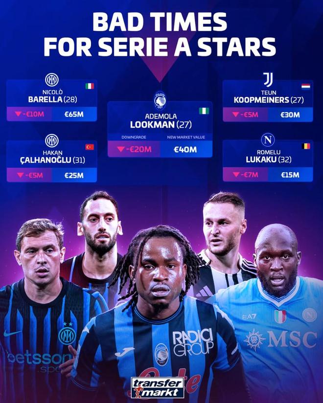 10月7日,北京时代更新了意甲球员的价值,德国也计算了10名球员,这次下降最大。卢克曼的价值下降了2000万欧元,下降了最大,而劳塔罗,巴雷拉,迪马科,弗拉霍维奇和恩肯库克下跌了1000万欧元。在德国之后,甲式意甲球员的价值下降了前20名。1。Lukeman(亚特兰大)-2000万欧元(4000万欧元)2。Lautaro(Inter Milan)-1000万欧元(8500万欧元)2。Barrera(Inter Milan)(Inter Milan)-Barrera(Inter Milan)-2000万欧元(6,500万欧元)2.3500万欧元(3500万欧元)(3500万欧元) - 卢克(35亿美元)。 euros) 7. Esturpiniano (AC Milan) - 8 million euros (22 million euros) 7. Lewis Ferguson (Bologna) - 8 million euros (20 million euros) 9. Euro (25 million euros) 9. Debruyne (Napoli) - 7 million euros (20 million eurosros) 12. Neres (Naples) - 6 million euros (24 million euros) 12. Leonbailey (罗马)-600万欧元(2200万欧元)12。Akanji(Inter Milan)-600万欧盟ROS(2200万欧元)12。16。Openda(尤文图斯)-500万欧元(4500万欧元)16。EdsonSilva(亚特兰大)-500万欧元(4500万欧元)16。Kupmenas(尤文图斯)-500万欧元(3000万欧元)16。16。米兰)-500万欧元(2500万欧元)16。杜维比克(罗马)-500万欧元(2500万欧元)16。Cialhanoglu(Inter Milan)-500万欧元(2500万欧元)-500万欧元(2500万欧元)-2000万欧元(2000万欧元)16。ChoiAdams(Turino)-500万欧元(1000万欧元)(16欧元)。 16. Andreacambiaso(尤文图斯)-500万欧元(3500万欧元)16。Goodmondson(Fiorentina)-500万欧元(1800万欧元)16。EURO)16。ROMAGNOLI(LAZIO)-500万欧元(700万欧元(700万欧元)16。